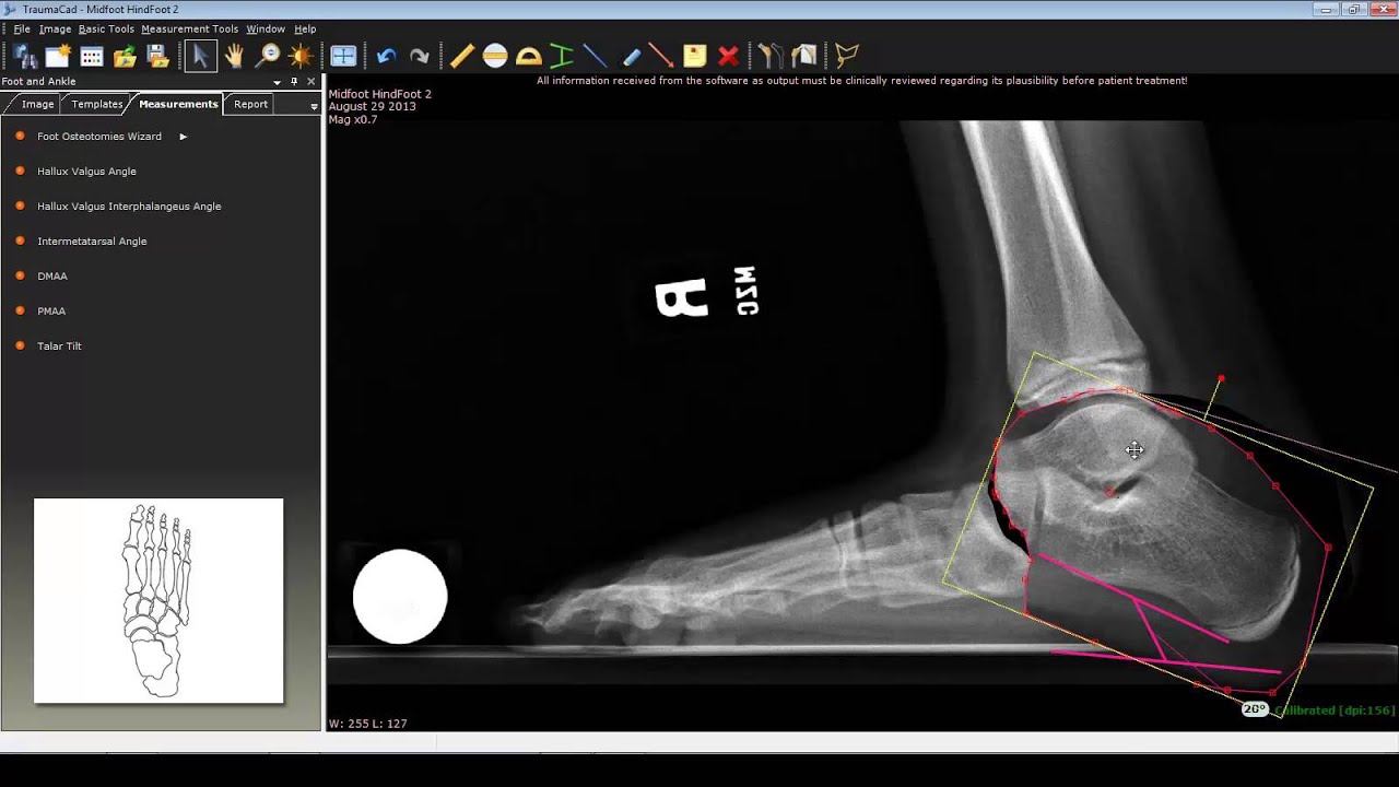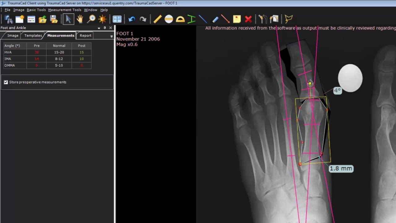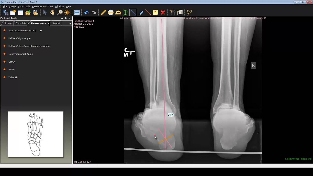 TraumaCad offers a variety of intuitive and easy to use wizards and measurement tools specifically designed for Foot & Ankle pre-operative planning.