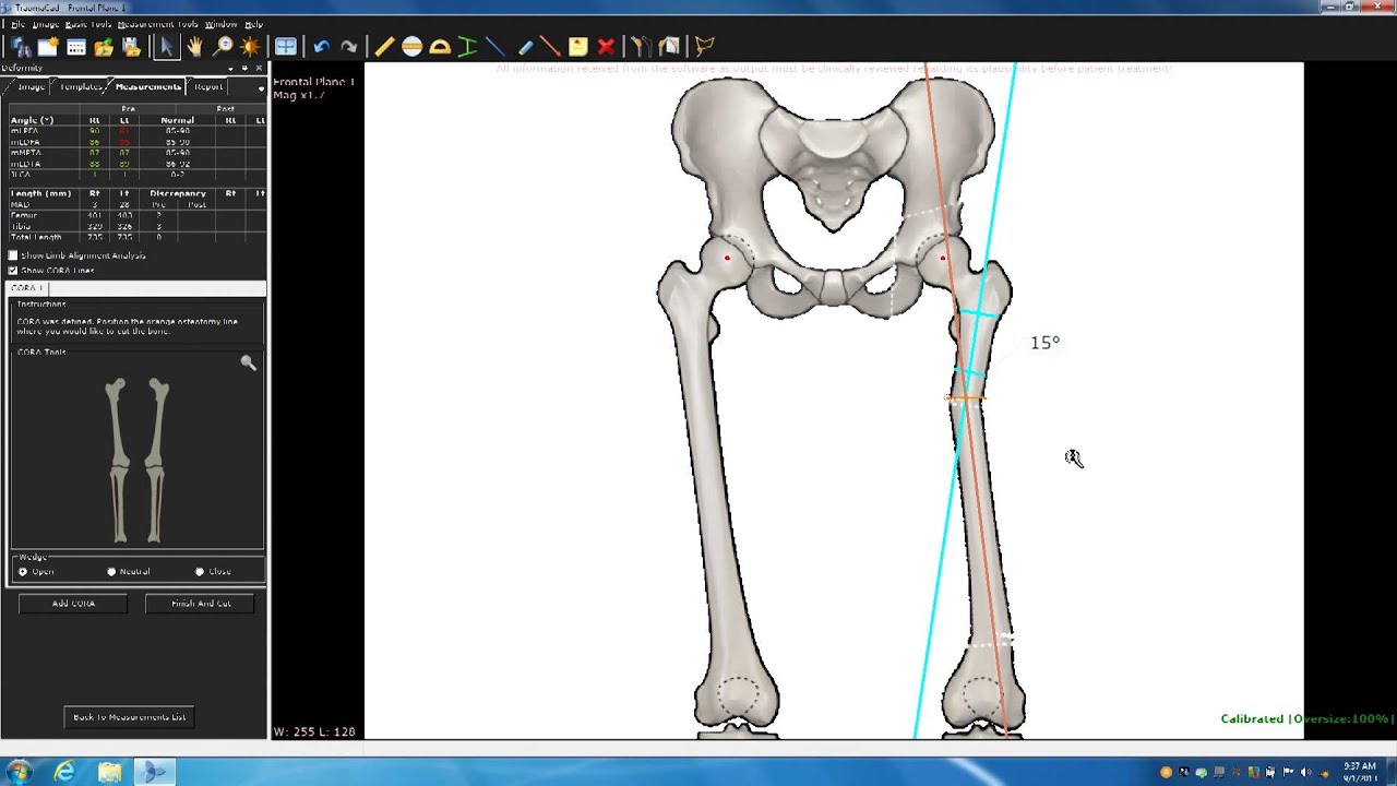 Ease of use in comprehensive deformity corrections allows you to automatically visualize osteotomy results and limb alignment following CORA planning.