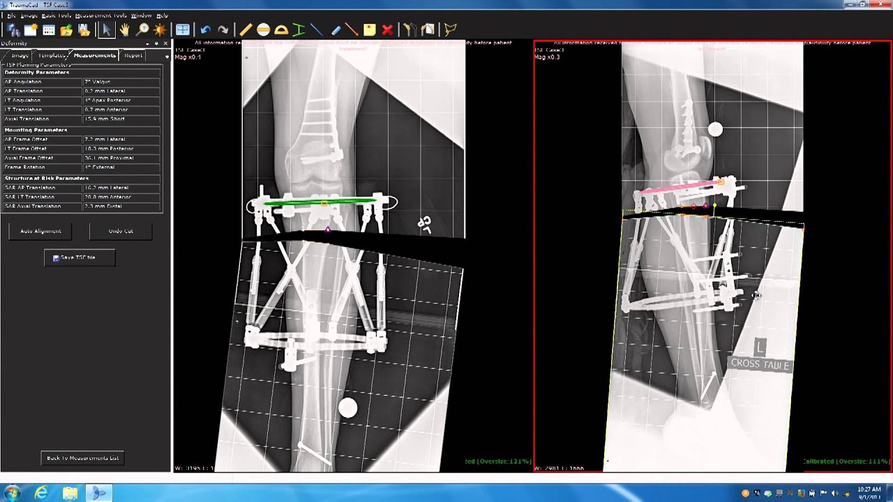 Easy-to-use wizards produce measurements and planning tools for deformity correction including external fixation, including: