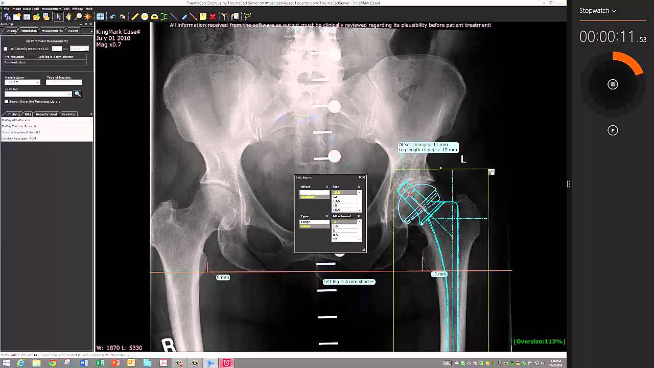 Surgeons appreciate the accuracy of TraumaCad and seem to like the notations field which can be seen on the bottom of the images."
