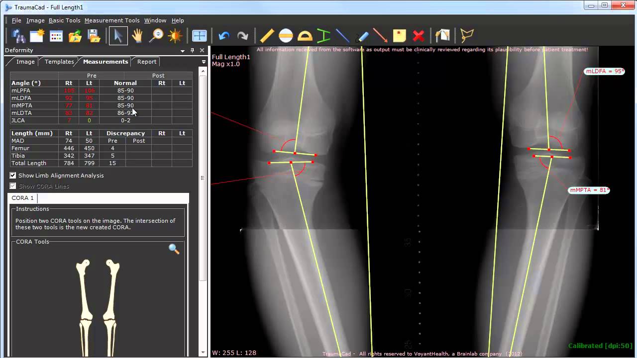 TraumaCad was specially designed by pediatric orthopedic surgeons to provide doctors with intuitive tools to digitally template and plan surgery. The variety of wizards and measurements ranges from simple tools to comprehensive assessments, including limb alignment analysis and deformity corrections.