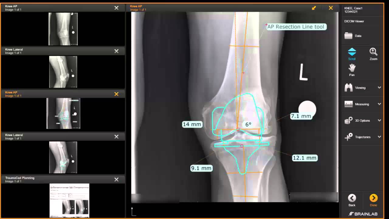 The software is user friendly, intuitive and produces a report which is an important part of the patient record. In revision surgery, pre-operative planning is further enhanced by the opportunity to plan using TraumaCad."